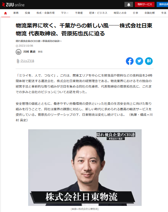 物流業界に吹く、千葉からの新しい風――株式会社日東物流 代表取締役、菅原拓也氏に迫る | ZUU online