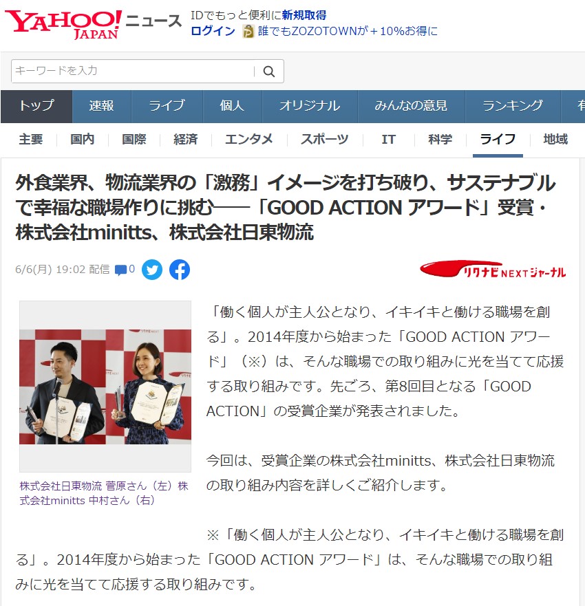 当社の取組みが、リクルートメディア「リクナビNEXTジャーナル」に紹介されました。