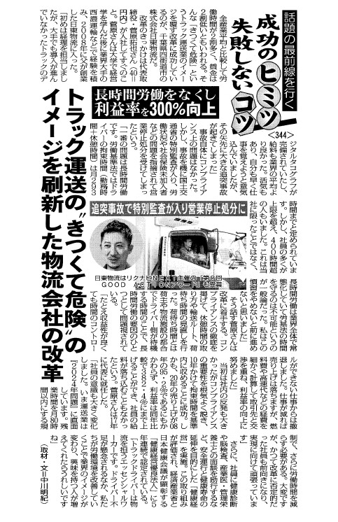 トラック運送の”きつくて危険”イメージを覆す ある物流会社が「やめた慣習・撤退した仕事」|日刊ゲンダイDIGITAL (nikkan-gendai.com)