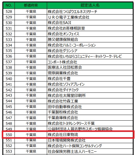今回の中小規模法人部門での認定企業数は千葉県内で47社(前回17社)、全国では2,503社(前回775社)と前回を大幅に超える認定がありました。