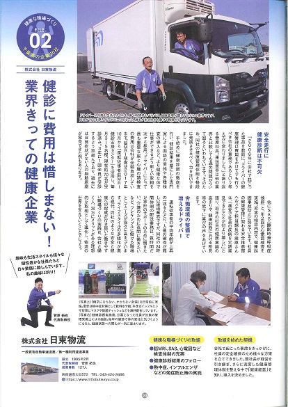 本冊子は千葉県内で「健康な職場づくり宣言」をしている会社の内、実践企業20社の取組み事例が紹介されたもので、弊社の頁では脳MRIやSAS検査の実施や管理栄養士の先生との面談を主とした取組みについて掲載されています。