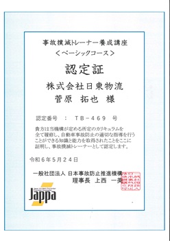 1月から5か月間学んできました一般社団法人日本事故防止推進機構さんの事故撲滅トレーナー養成講座の