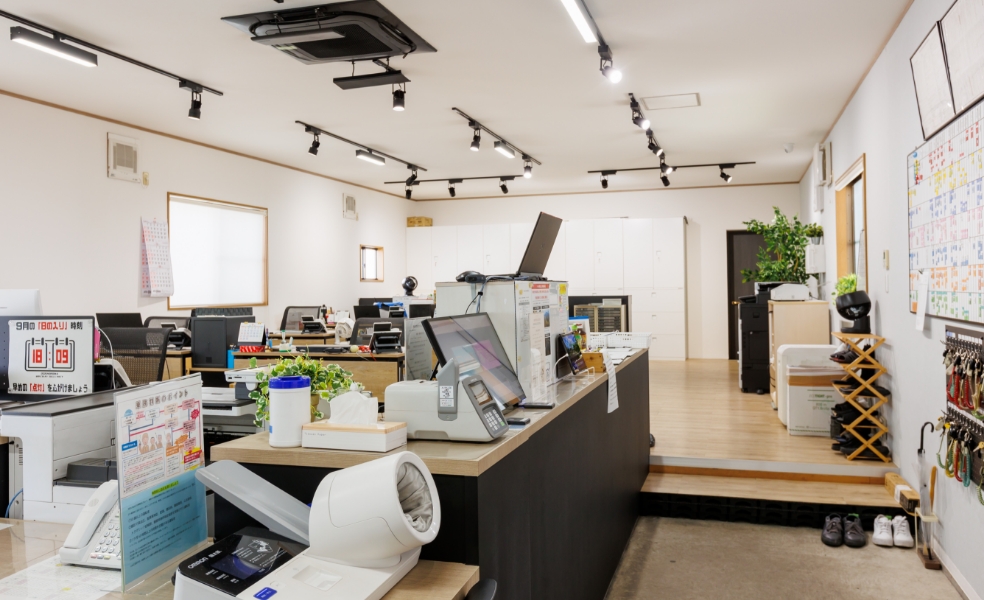 業務棟は、日々の点呼や運行業務の指示・アドバイスなどを行う、ドライバ―と運行管理者のコミュニケーションの場です。経験豊かな運行管理者が、ドライバ―を安全に活動出来るよう毎日サポートしています。