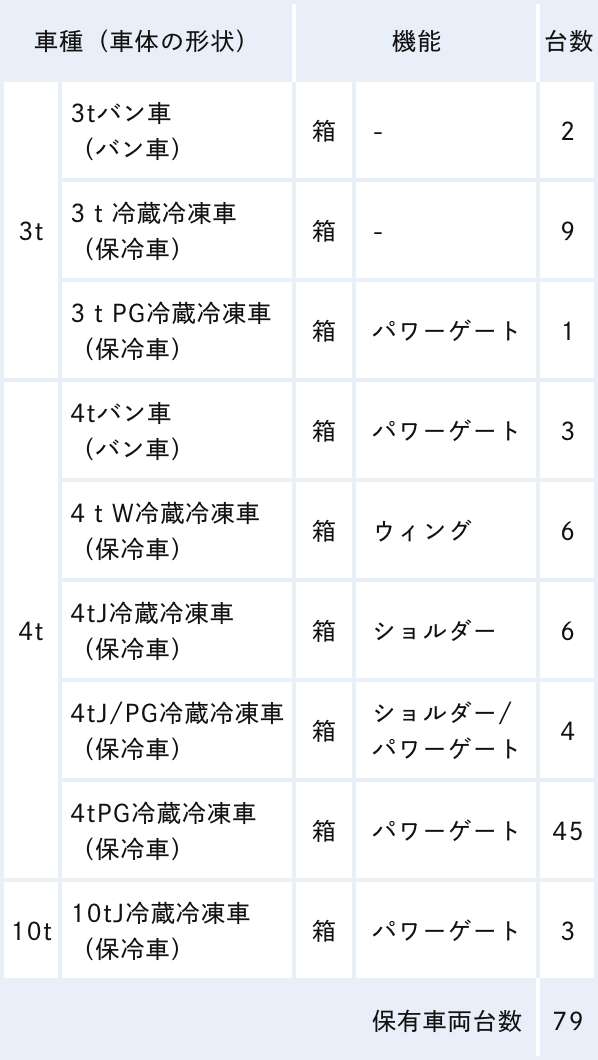 保有車両:エアサス冷蔵冷凍車・冷蔵冷凍車・バン車