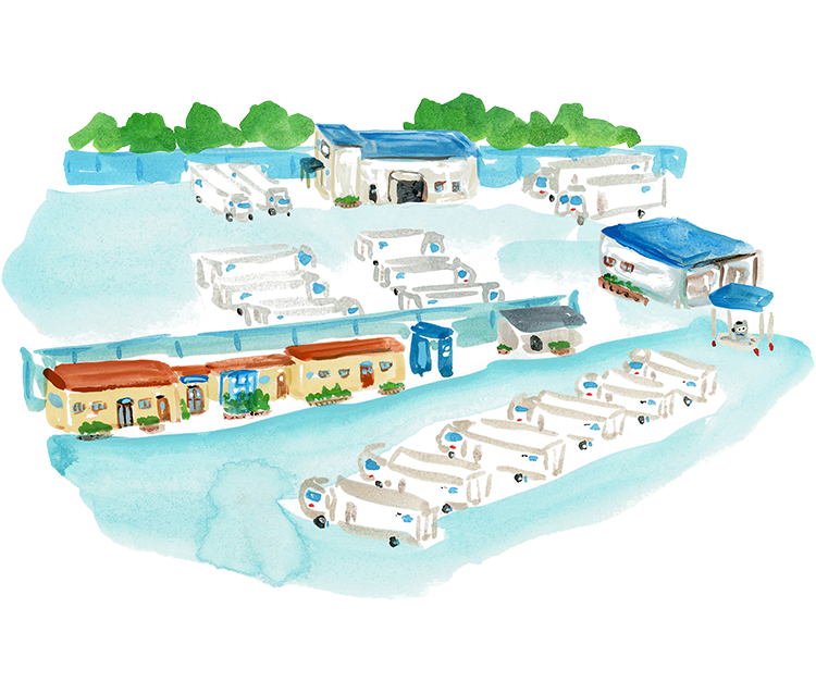 業務棟は、日々の点呼や運行業務の指示・アドバイスなどを行う、ドライバ―と運行管理者のコミュニケーションの場です。経験豊かな運行管理者が、ドライバ―を安全に活動出来るよう毎日サポートしています。